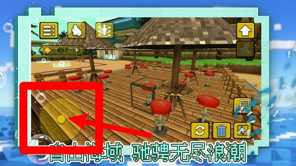 3. 屏幕左下角的圆形虚拟摇杆,能够操控角色自由移动。玩家借助它,可在沙滩与小屋这两个场景间随心切换,尽情探索不同景致,畅享沉浸式的像素海滨冒险之旅。