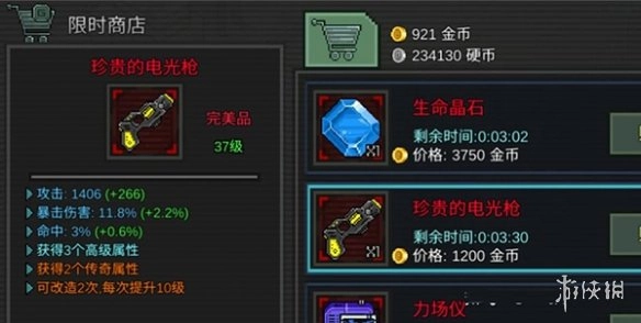 电光枪:子弹具有穿透效果,非常适合群体刷怪。