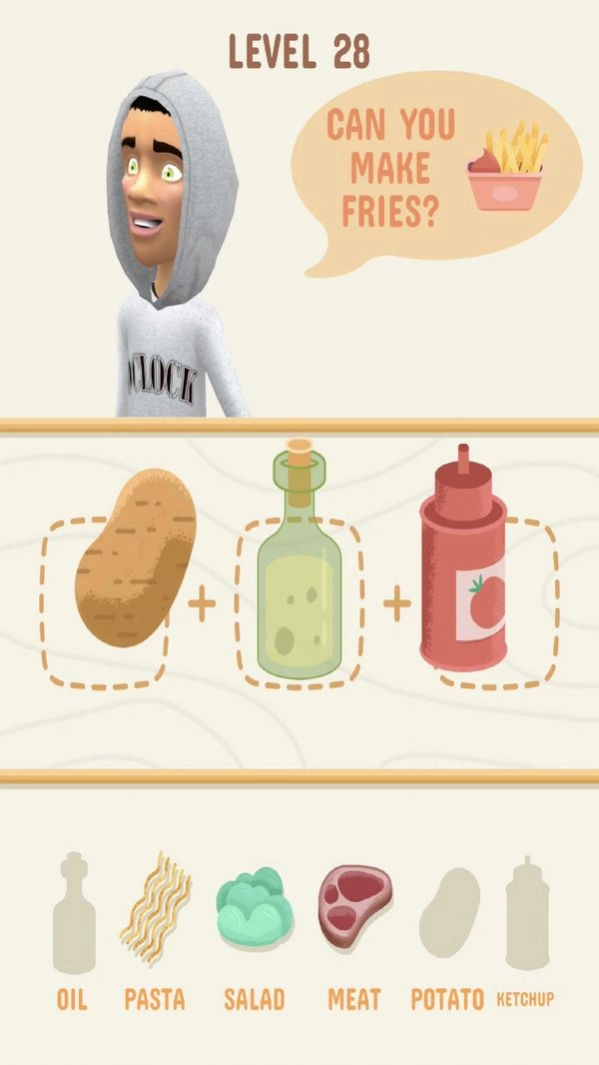 土豆、番茄等各类食材可以自由搭配,只需简单点击就能制作出美味的食物。