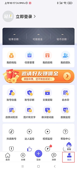 创作工具:去水印、视频提取文案、违禁检测、提词器、数据监控、账号诊断、账号估价