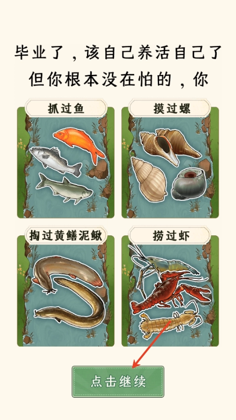 1. 于本站下载并安装抓鱼大师的最新版本,启动游戏后,点击“继续”。