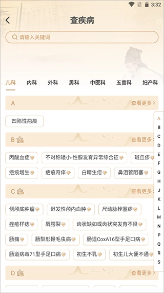 4、比如用户点击【查疾病】后,就能进入功能页面开展免费询诊。