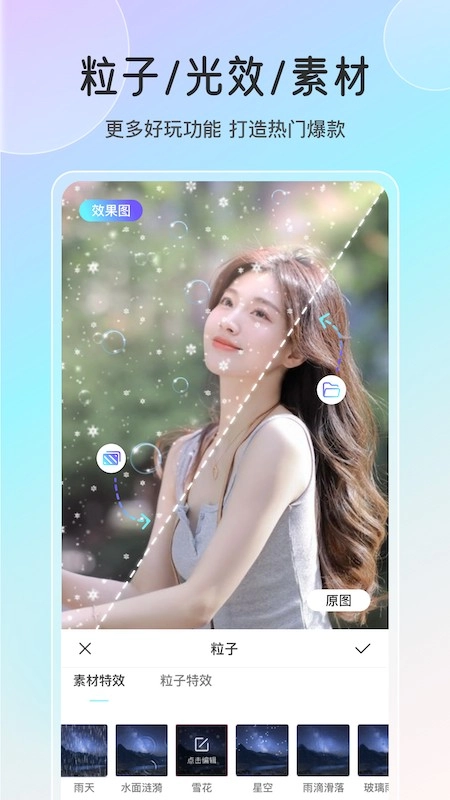 功能完备,创作自由无拘:其核心亮点是融合动态特效、粒子效果、AI绘画以及图层编辑等诸多功能,全方位支持从静态图片到动态壁纸,乃至从图像到视频的全链路创作过程。用户能够随心所欲地调整各项参数,尽情释放创意,达成创意的无限延展。