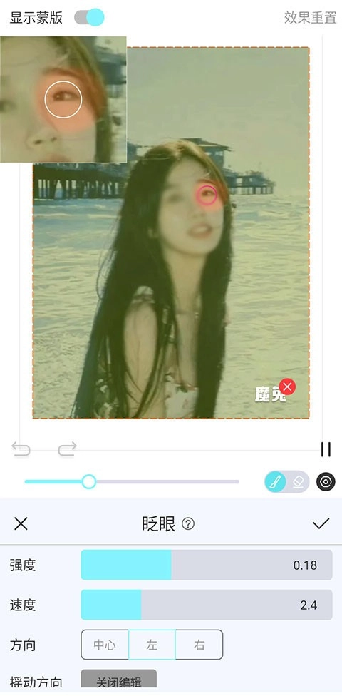 5、例如最火的眨眼特效,调整画笔的粗细,涂抹眼睛区域,就可以啦。