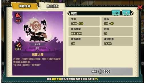 【驯猪大师】拥有一项特殊技能:在进行合成操作时,它会召唤出一只野猪发起冲锋,对一整排的敌人造成伤害。