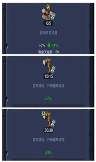 完成任务和升级建筑,能提升角色等级并获得天赋点数,这些点数可大幅缩短建造所需时间。前期选择天赋时务必谨慎,一旦点错只能通过购买天赋重置来重新分配,而天赋重置的花费较高,因此建议大家在点击前仔细规划!