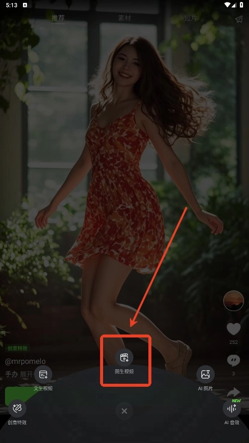 2.点击图生视频。