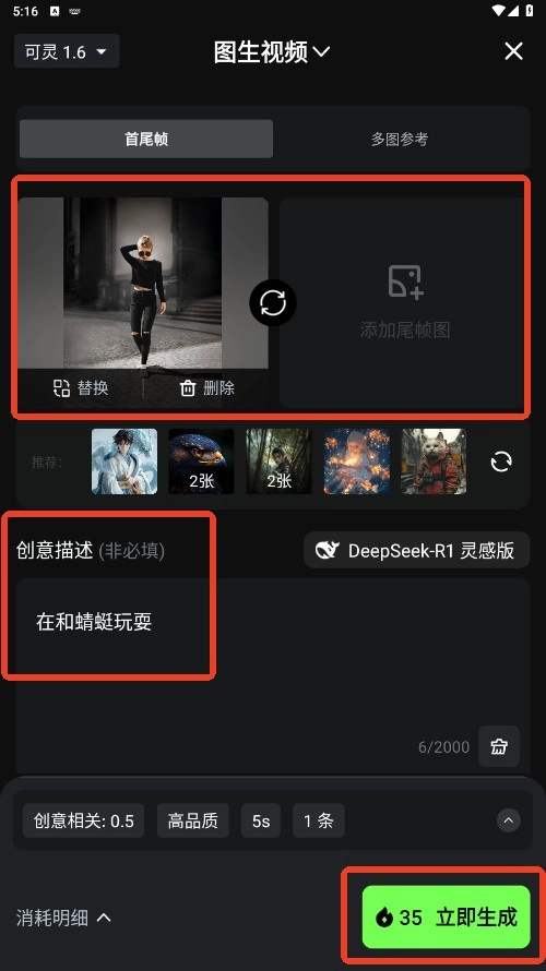 3.上传一张图片,描述你想要图片生成视频的样子。点击立即生成。