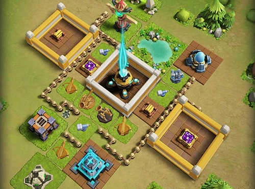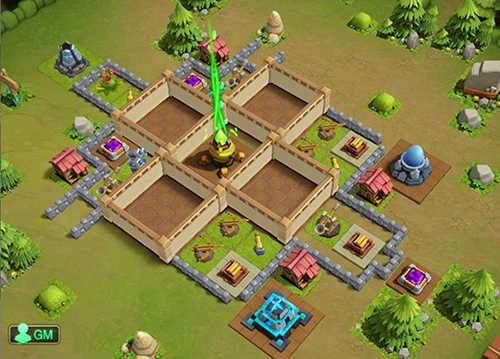 一种常见的策略是把攻击建筑均匀布置在围墙或拒马的周边,这样能保证核心区域的各个方向都得到保护。不过由于建筑数量存在上限,新手采用这种方法时,往往会导致火力变得分散,要是敌人集中火力攻击某一个方向,防线就很容易被突破。