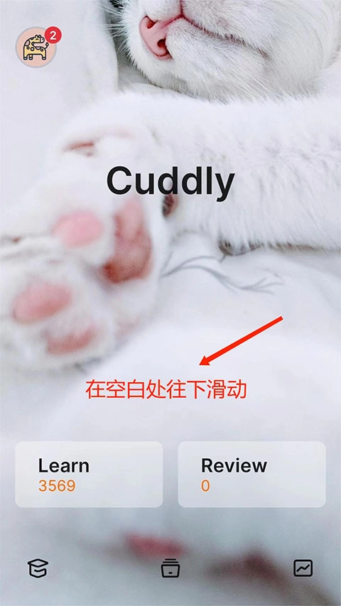 打开不背单词,进入主界面,在界面空白处往下滑动,