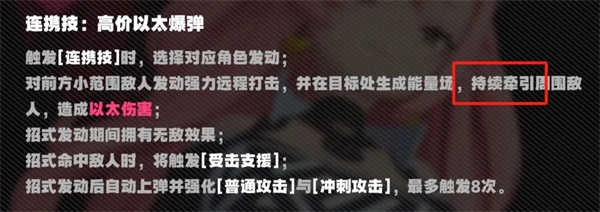 妮可的核心机制能量场,可通过施放强化E、QTE或Q来触发,能带来聚怪效果,在面对群体敌人的场景中能显著提高清理杂兵的效率,游戏前期聚怪的重要性想必无需过多解释。