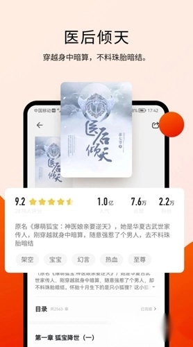 挑选好对应的书籍后,就能看到评分、正在阅读的人数、字数、内容简介等详尽信息。