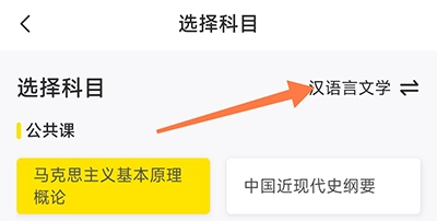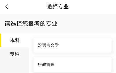 进入选择科目页面,默认为汉语言文学,点击它;