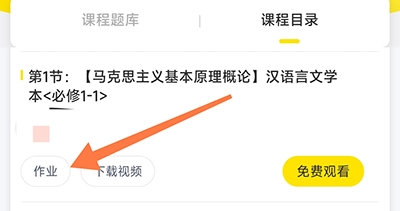 在自考王者的主页面,先点击切换到课程目录栏目,接着点击课程下方的作业选项。