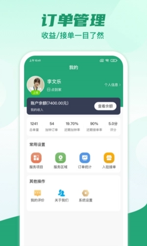 简约大方:点到家的接单界面设计温馨,视觉上显得格外大气,使用时能让人心情舒畅。