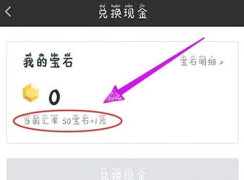 第五步,能看到50颗宝石对应一块钱。我们只需积攒宝石,就能兑换成现金了。