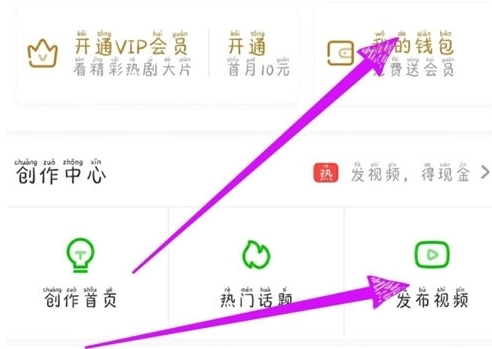 第三步,在个人主页找到创作中心,点击其后方的“发视频得现金”按钮。