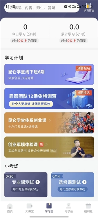 昆仑学堂是一家聚焦创业教育赛道的数字化学习服务平台,由具备实战经验的创业团队创建,致力于为创业者和企业管理者搭建体系化学习与资源对接的生态平台。该平台突破传统创业培训的时间与空间局限,以理论为基础、实战落地为核心,构建线上线下相结合的学习闭环,让处于不同发展阶段的创业者都能找到适合自身的成长方案。其课程体系涵盖修身精进、创业创新、经营管理三大方向,将线下高端班的36门核心课程分解为千余个短视频单元,搭配智能学习工具与资源对接服务,形成全年持续的学习生态。在这里,用户不仅可以学习各行业顶尖企业家的实战经验,还能通过学习小组、业总会直播等方式链接同行资源,更有机会获得奖学金奖励。