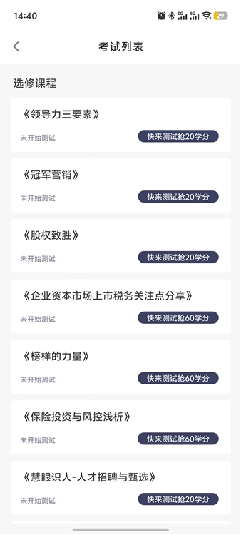 打开软件后进入课程库,点击顶部的选修课分类,即可查看可选课程的名称、时长以及主讲人信息。