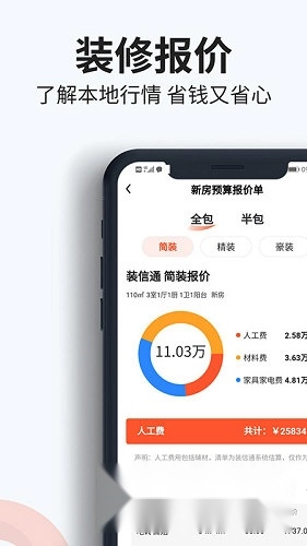 【智能精准报价】依托多维度科学算法,涵盖96项装修明细的报价清单,10秒内即可免费获取!装修预算提前算,让您远离装修陷阱!
