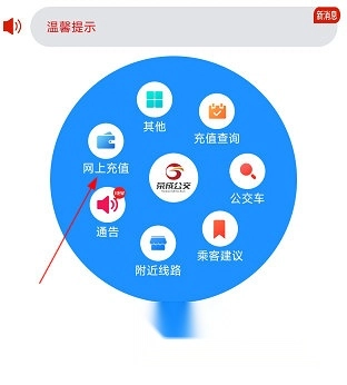 打开荣成掌上公交进入首页,点击“网上充值”。