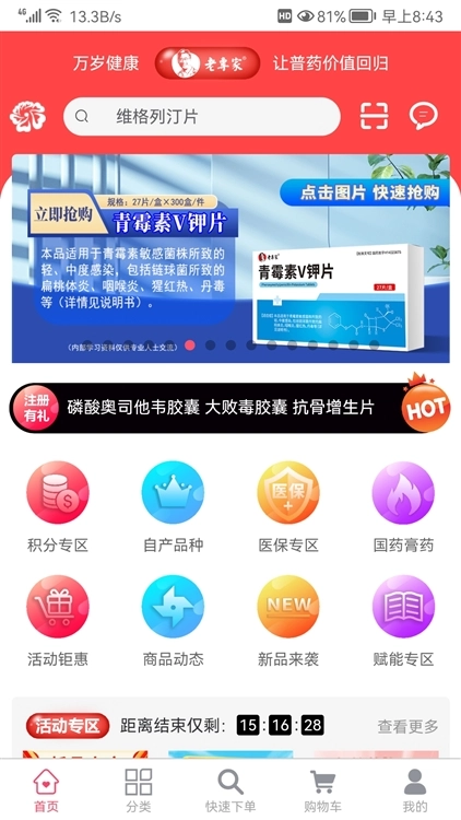 每天推出限时秒杀商品,帮助用户节省购药开支。