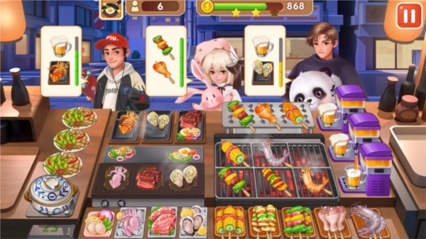 这种经营类游戏的玩法挺有意思的,看广告能获得双倍金币和钻石,炒菜店的设计很巧妙,特别考验双手的协调能力。左边要处理果汁和馄饨,右边有14种炒菜的排列组合,还得兼顾蒸蛋。每个店铺都有不同的食材,还有各种NPC会过来,能倾听他们的故事。这个游戏主要考验手速,最棒的是没有未成年限制!