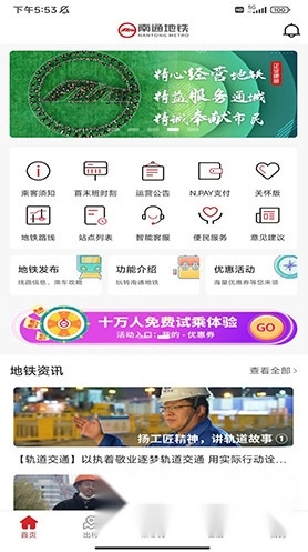 首先映入眼帘的是南通地铁的LOGO,整体界面设计简洁大气。