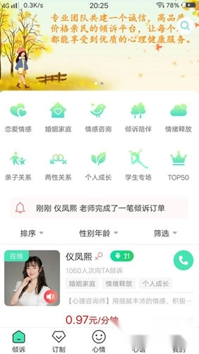 倾心倾诉是一款十分出色的心理健康咨询服务软件,它专为存在心理困扰的用户设计。平台汇聚了众多专业的心理健康工作者,用户能够随时就婚姻、恋爱、亲子、情感等多方面的心理问题进行咨询,从而助力大家更有效地管理自身心理状态,保持心理健康。