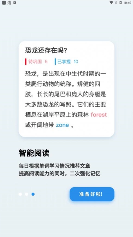 依据单词的掌握水平智能推送阅读材料,在阅读过程中回忆单词,既能提升单词回想能力,又能对记忆进行二次巩固