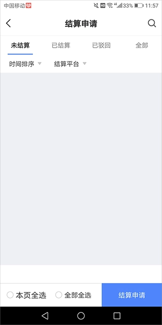 签收完成后回到工作台,点击“结算申请”,勾选对应的单子,再点击“结算申请”按钮。
