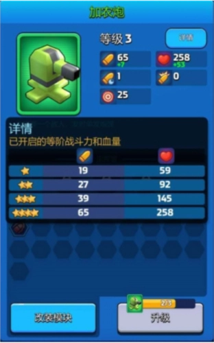 通过点击详情还可以查看炮台开启等阶战斗力和血量