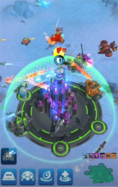 接下来,当对方发起第二波攻势时,敌人基本会从各个方向刷新出来。这一阶段需要大家直接开启防护罩,借助防护罩的特性来展开防御。BOSS登场后也会发起猛烈攻击,不过玩家们可以搭配冷却技能进行反击。对方会受到高额伤害,而玩家的防护罩即便被击破,只需等技能冷却结束就能重新使用。