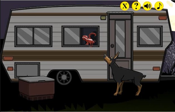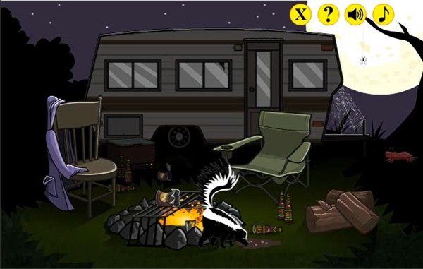 我们首先点击报纸再点火坑,点右下角的柴火再点火坑,然后点击左边的罐头盒放在烤架上,然后点击紫色衣服口袋里面的火机然后点火坑,等到臭鼬去吃烤架上的罐头后,点击臭鼬吃剩下的罐头和蜘蛛网,等蜘蛛下来后再点击蜘蛛网,然后点击臭鼬,等臭鼬被包裹后最后再点击一次臭鼬。最后点击有洞的车窗口,进入箱车。(直接点击臭鼬会出现一个好结局 )。