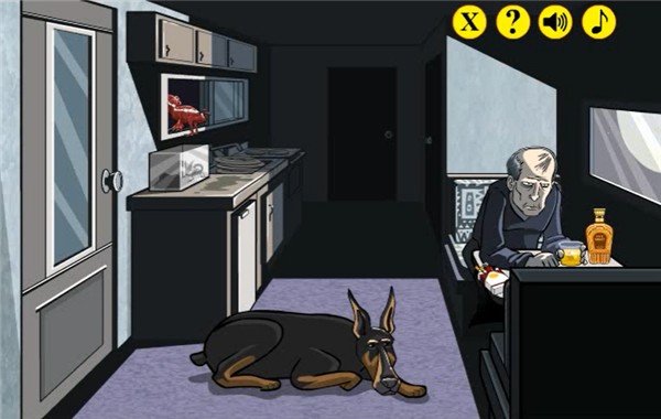 第一部分我们首先点击蝎子,再点击狗后面的柜子,然后点击里面的香肠,等待购被赶出去,然后点击虫子后面的窗子,从箱车出去。