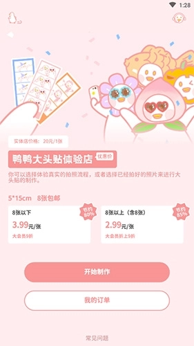 点击“开始制作”选项,完成制作后,鸭鸭大头贴体验店就会安排发货。由于大头贴打印属于定制类产品,将在4个工作日内发出。
