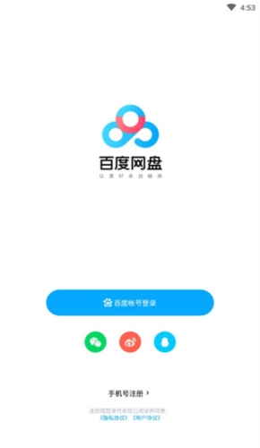 安装百度网盘精简版后,打开应用即可通过百度账号、微信、微博、QQ等多种方式进行登录。