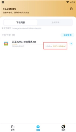 界面设计极为简洁,仅设有文件、传输、我的三个板块,全程无任何广告干扰。