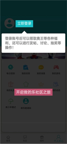 首先启动软件,进入主页面,这里是乐社区,能够浏览帖子以及发布帖子。