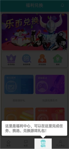 这里是福利中心,您可以在此完成任务、挑选并兑换礼包。