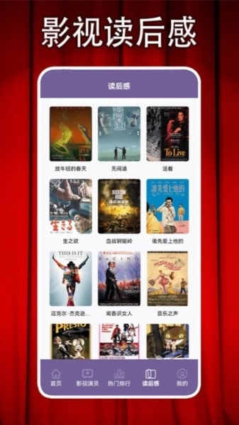 进入读后感页面后,能够查看各类影视的读后感详情。