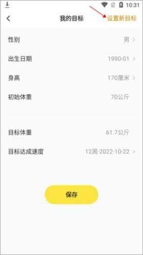 查看自己的初始目标之后,点击右上角的“设置新目标”。