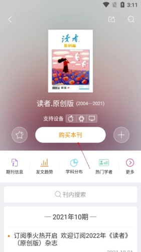 点击“购买期刊”选项即可了解具体的收费金额,软件的收费标准主要取决于用户购买书籍的数量。