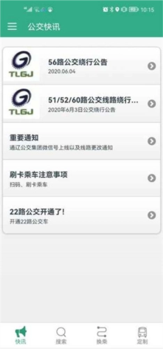 首先打开软件,在快讯板块能看到最新的公交动态,这能帮我们规避不少问题,像公交线路调整这类信息,在这里都能及时了解到。