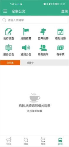 定制公交服务涵盖线路征集、乘车支付以及个人中心查询等功能。
