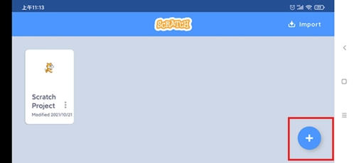 安装Scratch 3.0安卓版手机应用,打开软件后,点击右下角的“+”按钮来创建一个新的文本项目。