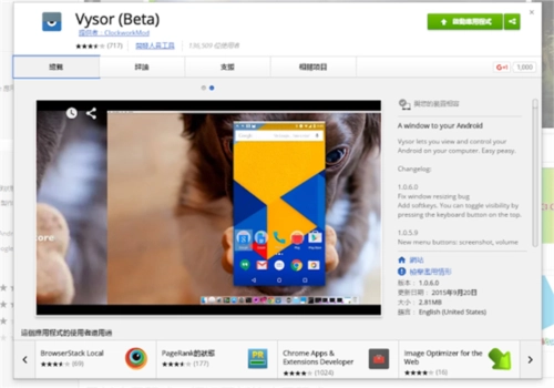 首先,我们要在电脑的GoogleChrome浏览器上安装“Vysor”这个工具。