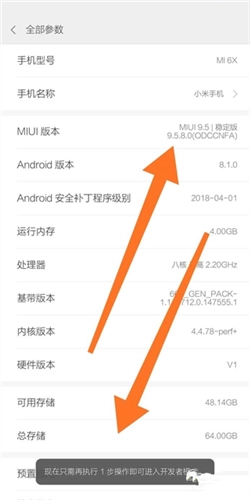 我们先打开安卓手机的设置,滑动到最底部进入“关于手机”,找到“版本号”选项,连续点击该选项多次,屏幕上就会弹出“开启开发者选项”的提示信息。