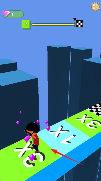2、行进中收集赛道上的钻石,遇到标有倍数的方格如【3X】,尽量踩上去,增加钻石获取量。