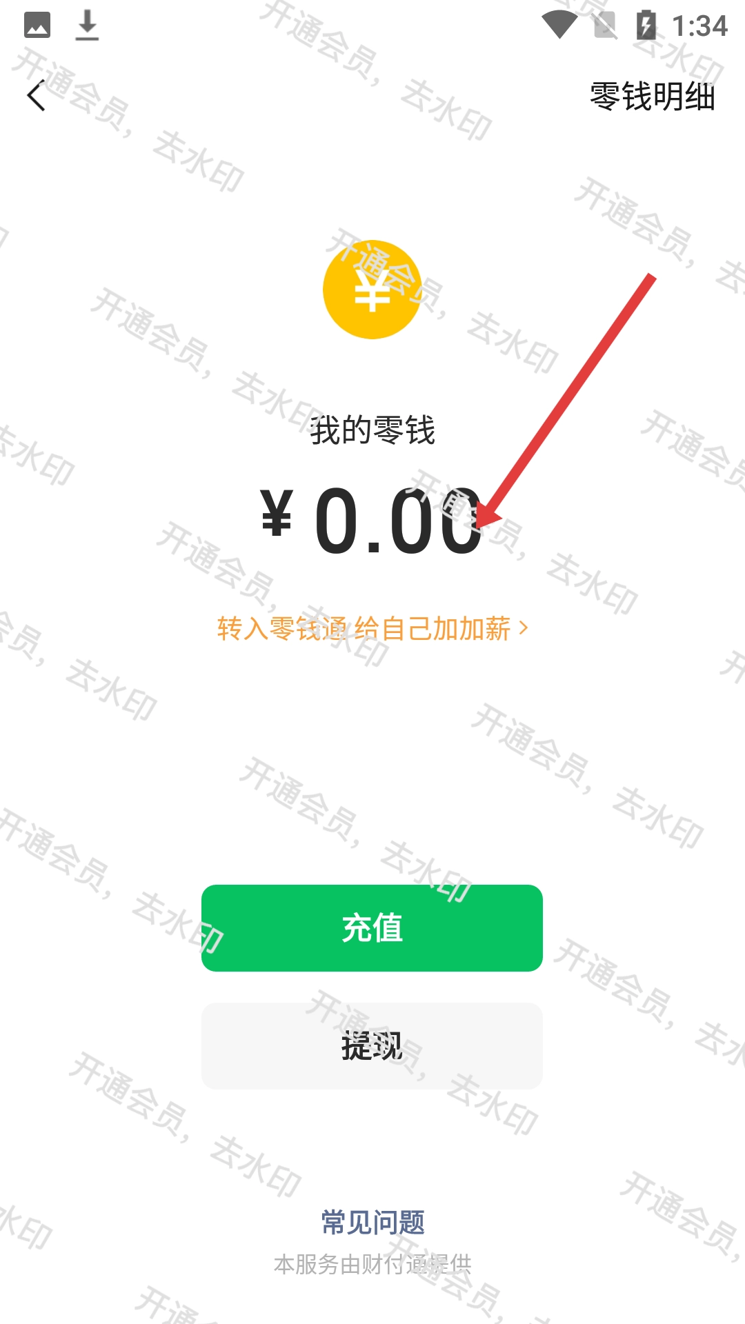 3、在模拟的零钱明细页面,能看到我的零钱余额,还有充值和提现按钮,你可以模拟给零钱充值或者把零钱提现,就像在真实的微信零钱界面操作一样。
